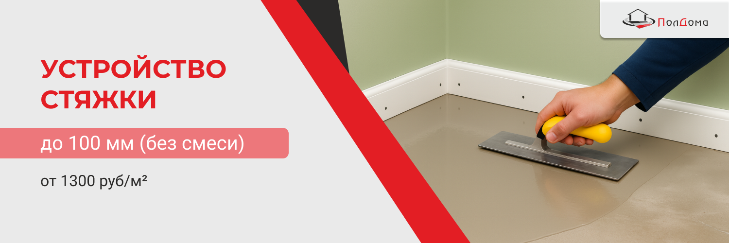 Устройство стяжки до 100 мм без смеси — решение для владельцев квартир, частных домов и коммерческих помещений, которым нужно подготовить основание под чистовое покрытие, но материалы уже закуплены. Услуга актуальна при перепадах 30–100 мм, необходимости скрыть коммуникации, выровнять плиты и задать уклоны (ванные, кухни, балконы). Подходит под ламинат, кварц-винил/ПВХ, керамогранит и линолеум, совместима с электрическим и водяным тёплым полом.